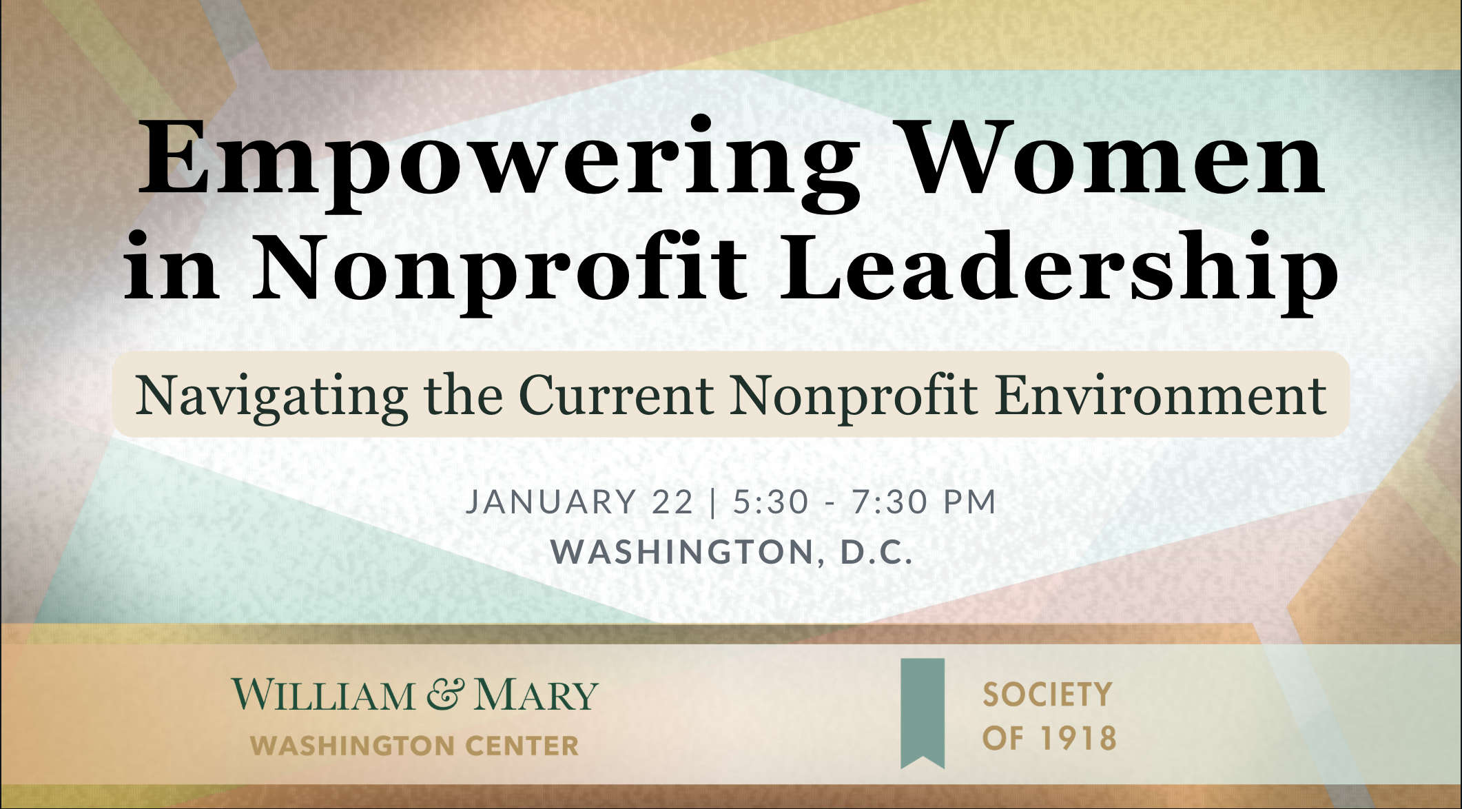 Nonprofit leaders are facing pressures unlike any in recent memory: shrinking resources, rising community needs, staff burnout and a rapidly shifting policy landscape. If you're feeling the strain, you are not alone and you deserve space to connect with leaders who understand these challenges firsthand.On January 22nd, the W&M Washington Center will host accomplished women in nonprofit leadership for a moderated, solutions-driven panel discussion on navigating the current nonprofit landscape. Featuring executives from diverse sectors, this event offers practical insights, hard-won lessons and innovative approaches shaped by women who have led organizations through profound uncertainty.Featured Voices